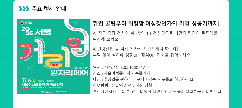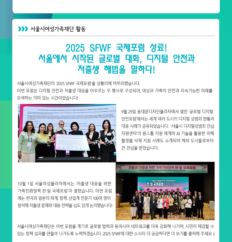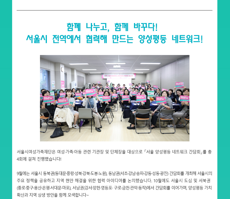서울시여성가족재단 10월 주요 행사 소식 및 활동