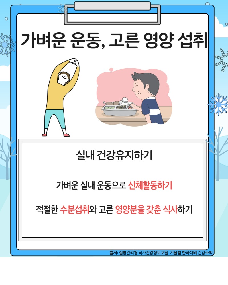 추운 겨울철 한파를 대비하기 위한 건강 수칙에 대해 전달드립니다!