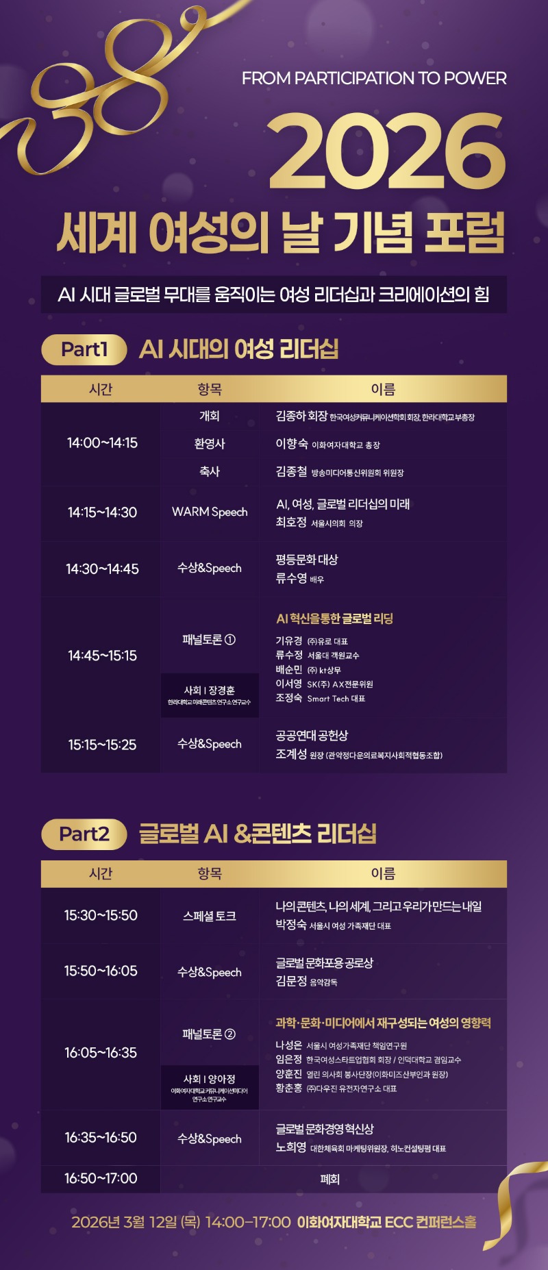 (주제) AI 시대 글로벌 무대를 움직이는 여성 리더십과 크리에이션의 힘