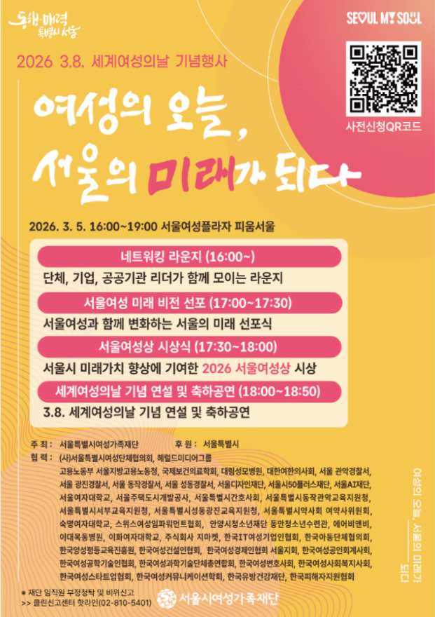 서울시여성가족재단은 2026년 3.8. 세계여성의날을 맞아