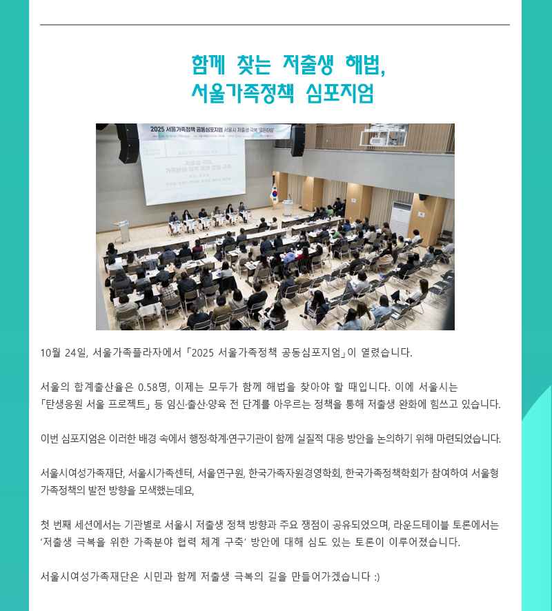 서울시여성가족재단 10월 주요 행사 소식 및 활동