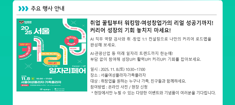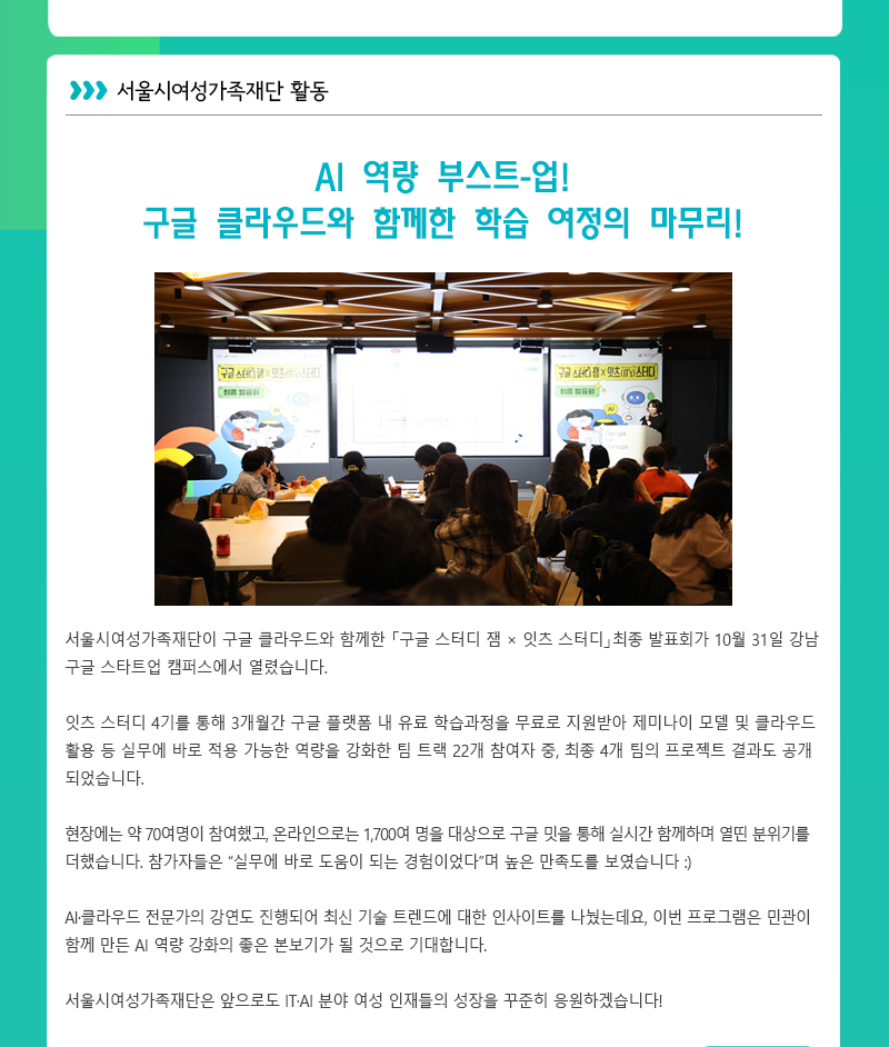 서울시여성가족재단 11월 주요 행사 소식 및 활동