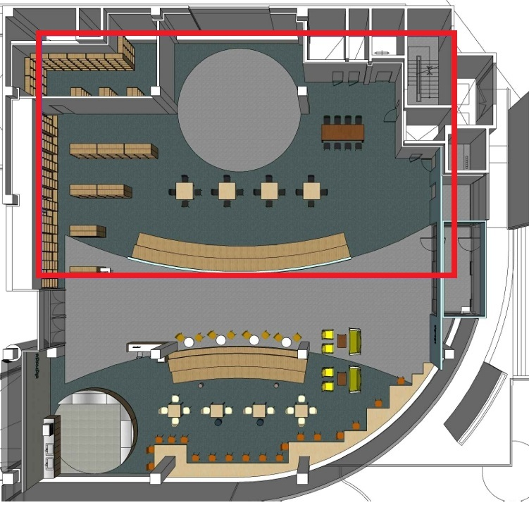 준비 및 철수 시간에는 아래 표시된 다목적라운지 일부 공간에 한해 이용 제한이 있을 수 있습니다.
